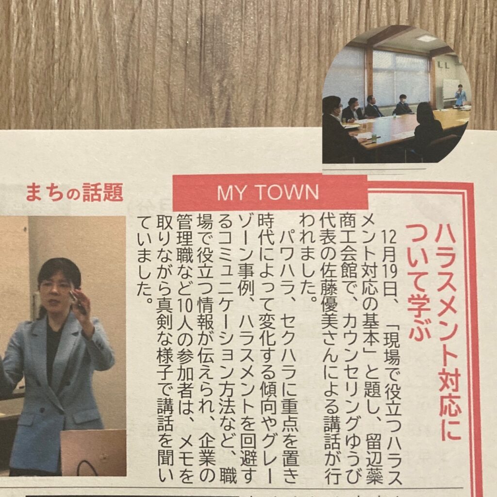 留辺蘂(るべしべ)商工会議所様で開催された「現場で役立つハラスメント対応の基本」講話が北見市の広報 留辺蘂版にご掲載いただきました。